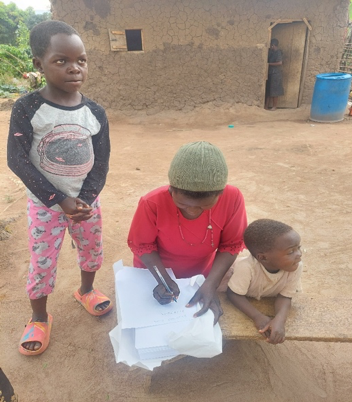 Att besöka boende i närområdet i Kibisi är alltid lika intressant. Att t ex få träffa Malubwama Gorret, som genomgått analfabetutbildningen för vuxna och se hennes stolthet att kunna skriva sitt namn, dagens datum och siffror gör ”inget öga torrt”.