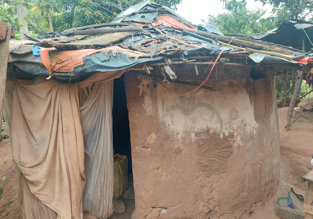 En fattig familj som är klädda i kläder vi hade med oss, deras hem och dagens mat i köket