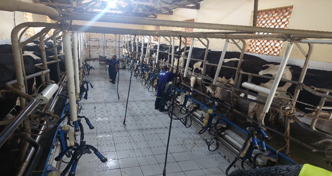 Nästa stopp blev JESA farm som är en stor gård belägen i Busonjo. Vi fick en rundvandring med hjälp av förmannen Hussein. Gården har omkring 500 nötboskap och stora arealer med mark. Gården bedrivs modernt och vi såg att Ugandas jord verkligen kan leverera. Gården har ett eget mejeri och vi hittade många av JESA farms produkter sedan i mejerihyllorna i butikerna.